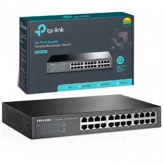 The TL-SG1024D 24-Port Gigabit desktop/rack-mount switch provides an easy way to make the transition to Gigabit Ethernet. All 24 ports support auto MDI/MDIX, no need to worry about the cable type, simply plug and play. Moreover, with the innovative energy-efficient technology, the TL-SG1024D can save up to 20%* of the power consumption, making it an eco-friendly solution for your business network. Gigabit Switch Featured with 24 10/100/1000Mbps ports, TL-SG1024D greatly expands your network capacity, enabling instant large files transferring. So,power users in the home, office, workgroup, or creative production environment can now move large, bandwidth-intensive files faster. Transfer - graphics, CGI, CAD, or multimedia files across the network instantly. GO GREEN WITH YOUR ETHERNET You now have the choice to go green when upgrading to a gigabit network! This new generation TL-SG1024D 24-Port Gigabit desktop/rack-mount Switch features the latest innovative energy-efficient technologies that can greatly expand your network capacity with much less power. It automatically adjusts power consumption according to the link status and cable length to limit the carbon footprint of your network. Power down Idle Ports When a computer or network equipment is off, the corresponding port of a traditional switch will continue to consume considerable amounts of power. The TL-SG1024D can automatically detect the link status of each port and reduce the power consumption of ports that are idle. Power Budget According to Cable Length Ideally, shorter cables would use less power because of less power degradation over their length, this is not the case with most devices as they will use the same amount of power across the cable regardless of whether it is 10 or 50 meters in length. The TL-SG1024D analyzes the length of the Ethernet cable connected and adjusts the power usage accordingly, rather than keeping the power consumption in a conventional solution. Easy to Use The auto features of this gigabit switch make installation plug and play and hassle-free. No configuring is required. Auto MDI/MDIX eliminates the need for crossover cables. Auto-negotiation on each port senses the link speed of a network device (either 10, 100 Mbps or 1000 Mbps) and intelligently adjusts for compatibility and optimal performance. Features - Innovative energy-efficient technology saves power up to 20%; - Supports IEEE 802.3x flow control for Full Duplex mode and backpressure for Half Duplex mode; - Non-blocking switching architecture that forwards and filters packets at full wire-speed for maximum throughput; - 48Gbps Switching Capacity; - 10K Jumbo frame improves performance of large data transfers; - Auto-MDI/MDIX eliminates the need for crossover cables; - Supports MAC address auto-learning and auto-aging; - Store and forward Switching scheme; - Auto-negotiation ports provide smart integration between 10Mbps, 100Mbps and 1000Mbps hardware; - Desktop and Rack-mountable design; - Plug and Play design simplifies installation.