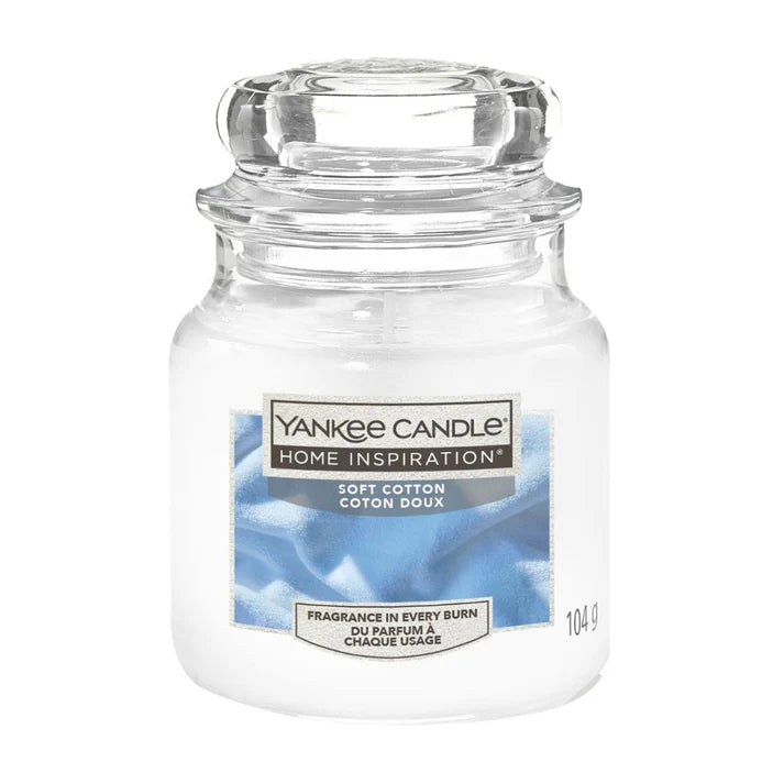 Yankee Candle® Home Inspiration® Soft Cotton provides a fresh and airy aroma throughout your home, such as the clean, comforting scent of soft, fluffy towels just out of the dryer.